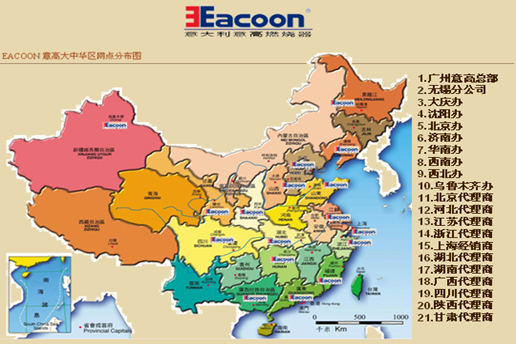 Our sales network throughout the whole of China,in 21 provices as below: